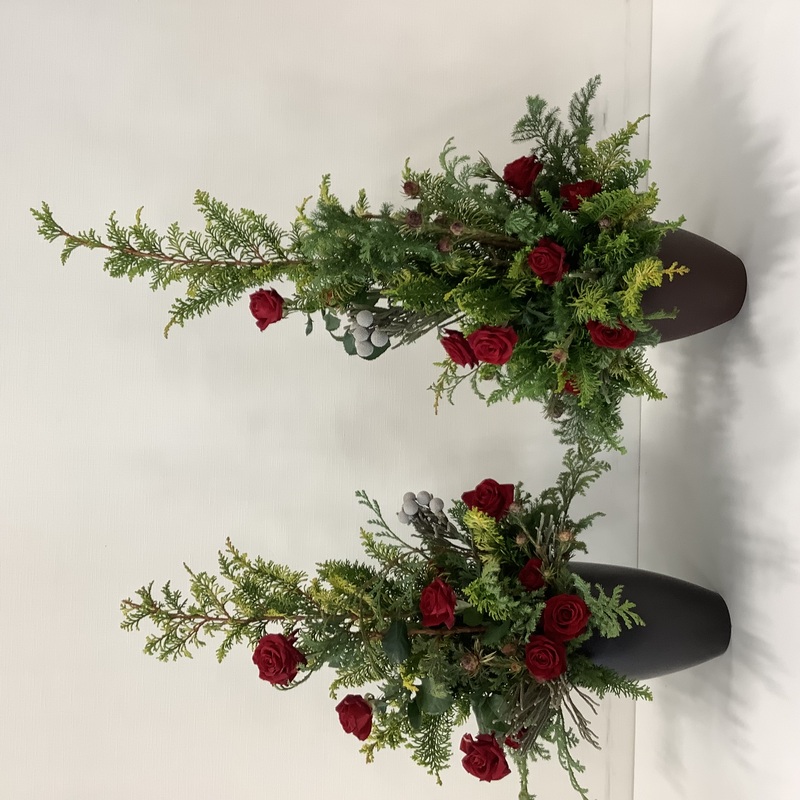 赤バラを足してツリー風にアレンジをした方もいます。