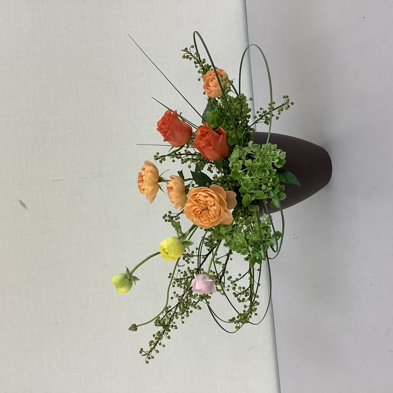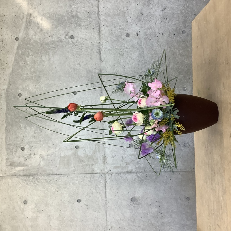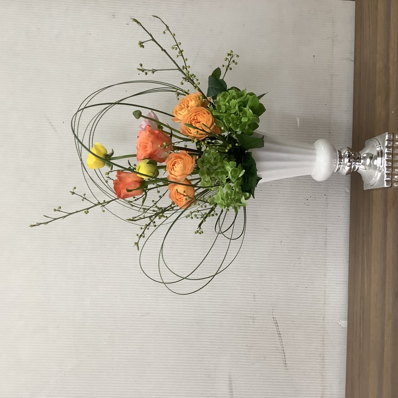 曲げて曲線にしても面白い花材です。